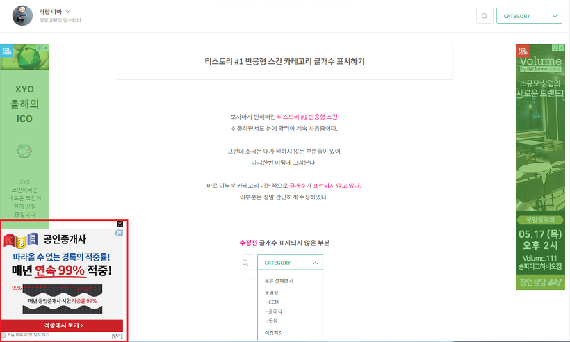리얼클릭 Realclick 으로 티스토리 왼쪽 하단에 광고 띄우기 [PC 버전]