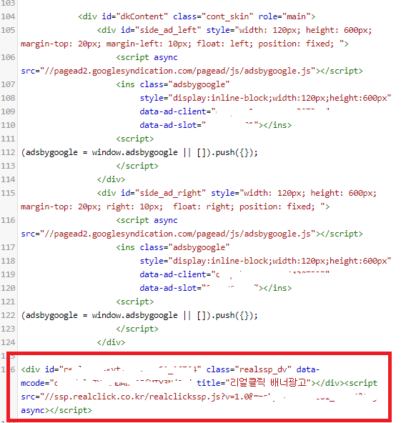 dkContent 아래 부분에 애드센스 넣은 부분바로 아래에 1번의 스크립트를 가져와서 저장하면된다.