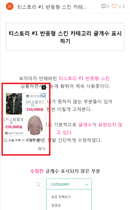 | 티스토리 스킨 #1 글 아래 카테고리의 다른글 이미지와 같이 보이기 (0) | 2019.03.25 |